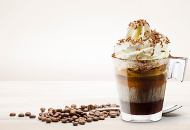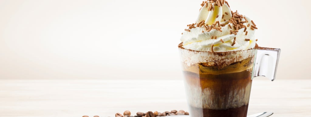 Caffè schiumato. Crema Galak, panna, Topping galak